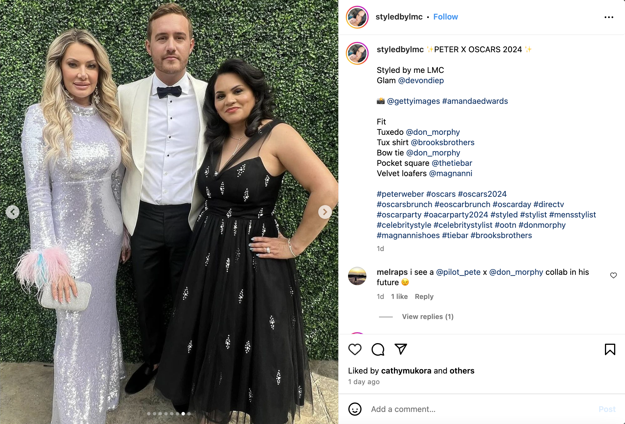 Television personality and airline pilot Peter Weber shined on the red carpet in a white Brooks Brothers tuxedo shirt, while TV host Ross Mathews sported the Classic Fit Velvet 1818 Dinner Jacket for his “Rosscar” segment on The Drew Barrymore Show.