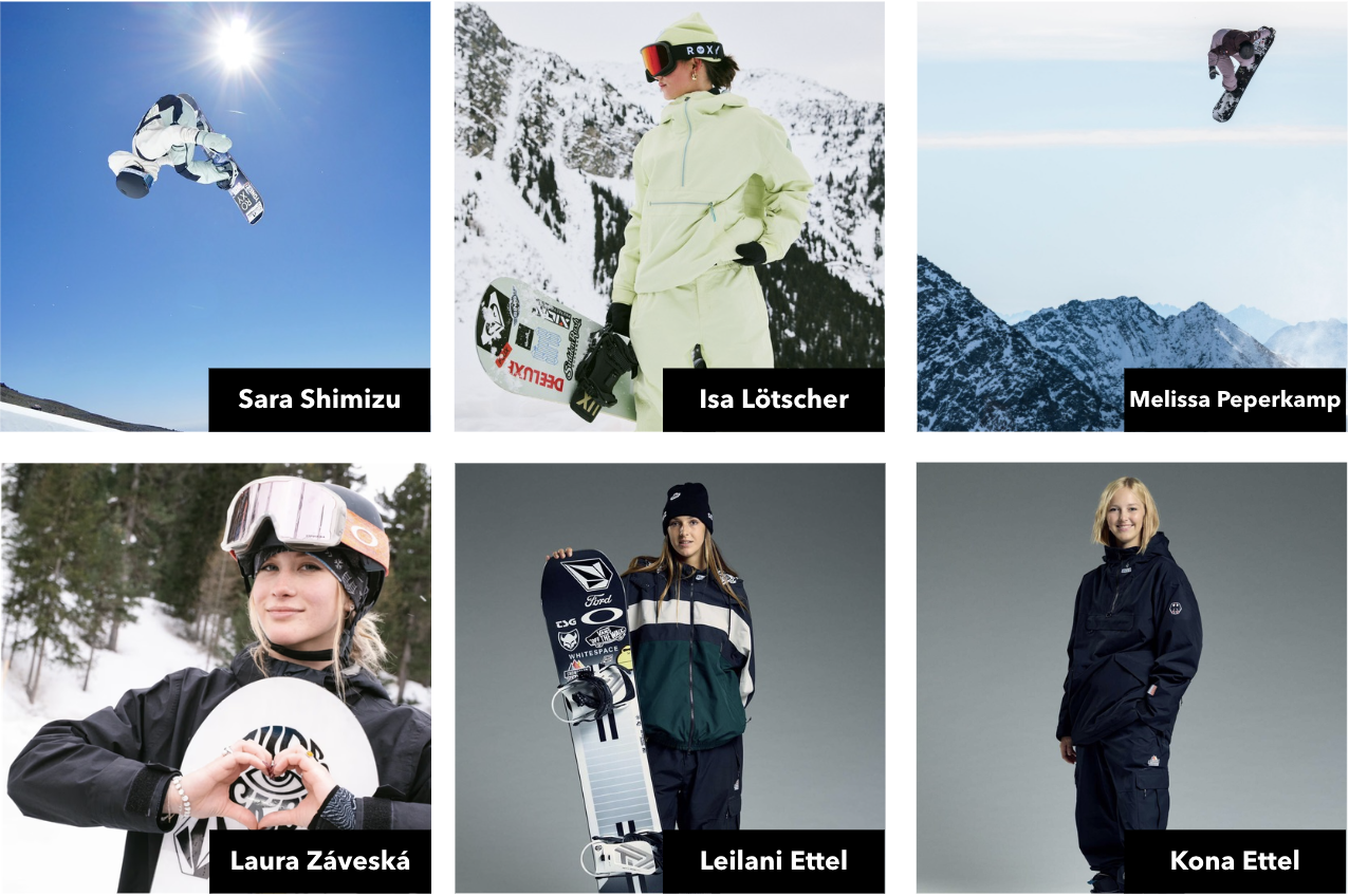Other Roxy athletes included Japanese snowboarder Sara Shimizu, who impressed with a fourth-place finish at just 16 years old in her Olympic debut, along with Isa Lötscher representing Switzerland and Melissa Peperkamp competing for the Netherlands. The momentum continued with Volcom athletes Laura Záveská competing for the Czech Republic as well as sisters Leilani and Kona Ettel representing Germany, all showcasing impressive control and style on the slopes.